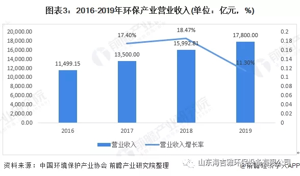 随着污染防治攻坚战的实施,我国环保产业市场需求进一步释放,环保产业发展的营商环境持续改善,环保产业规模继续保持较快增长,全行业工艺和技术装备水平稳步提升、创新模式深入推进,产业结构不断完善,行业格局逐步优化。尽管受到2018年产业发展流动性危机余波及中美贸易摩擦的影响,2019年一些环保企业依然面临着经营危机,但总体来看,2019年环保产业整体发展态势趋好,持续保持了较快发展。据中国环境保护产业协会测算数据,2019年全国环保产业营业收入约17800亿元,较2018年增长约11.3%。