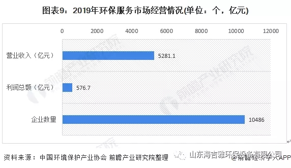 据环境保护产业协会数据,2019年我国列入统计的环境服务企业共10486个,年收入总额为5281.1亿元,年利润总额为576.7亿元。